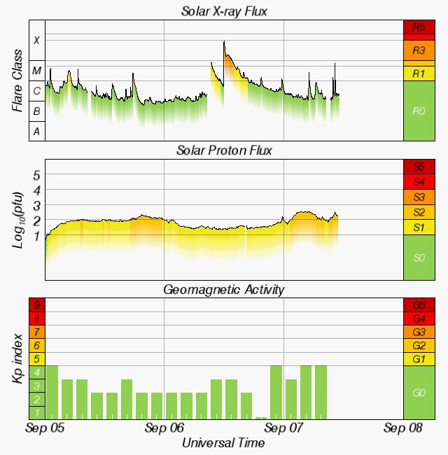 Space Weather is also being watched today due to an inbound Coronal Mass Ejection creating increased geomagnetic activity, proton flux.