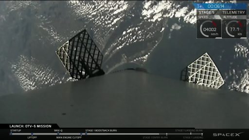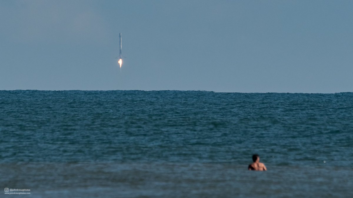 Cape Canaveral came into view from the booster's onboard camera as it reached a top speed of 1,291m/s at the start of the entry burn six minutes and 32 seconds into the flight. Using a staggered ignition & shutdown scheme, the entry burn lasted twenty seconds and slowed the vehicle by 745 meters per second – creating a fairly benign re-entry at a speed of Mach 2.2.
