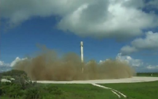 Falcon 9 switched its two stages to internal power, the Strongback moved back and was primed for a rapid kickback at T-0 and the triple-redundant flight control system was aligned for flight. The Autonomous Flight Termination System was armed and final approval for liftoff was voiced from the Eastern Range and Launch Director while Falcon 9 went into final tank pressurization.