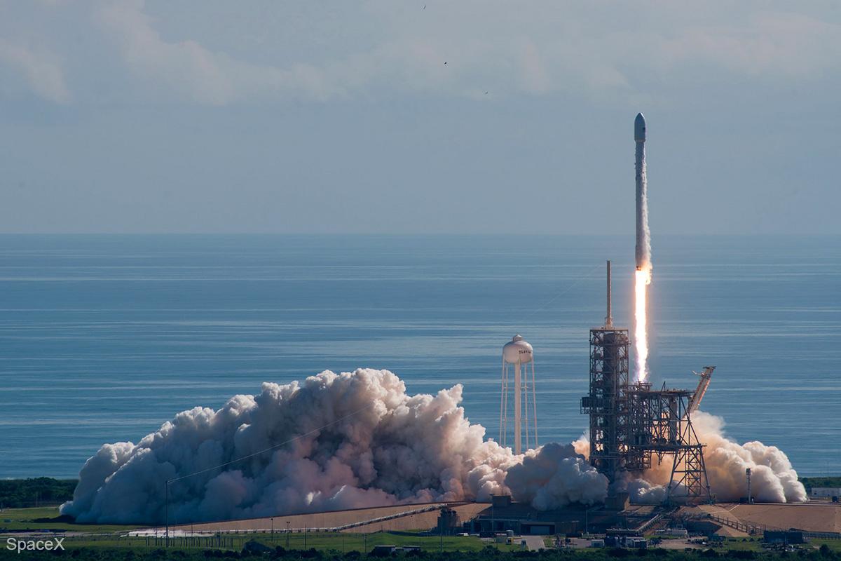 A communications satellite for SES and EchoStar is scheduled to fly into geostationary orbit no earlier than Oct. 2 from pad 39A aboard a previously-flown Falcon 9 booster. The first stage has been readied for a second launch after a successful liftoff and landing in February.