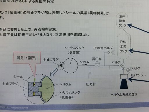 In a press conference, launch vehicle operator Mitsubishi Heavy detailed that a foreign object within the seal of the fill & drain plug on the high-pressure Helium tank caused that seal to leak which was picked up on sensors as a loss of pressure from the system. Replacement components were put in place and pressure integrity checks confirmed that the Helium system of the 37-meter long first stage was holding pressure. The foreign object, characterized as non-metallic and 0.5mm in size, was introduced during processing when the fill/drain port on the tank was sealed up since only one of two such ports on the tank is in active use.