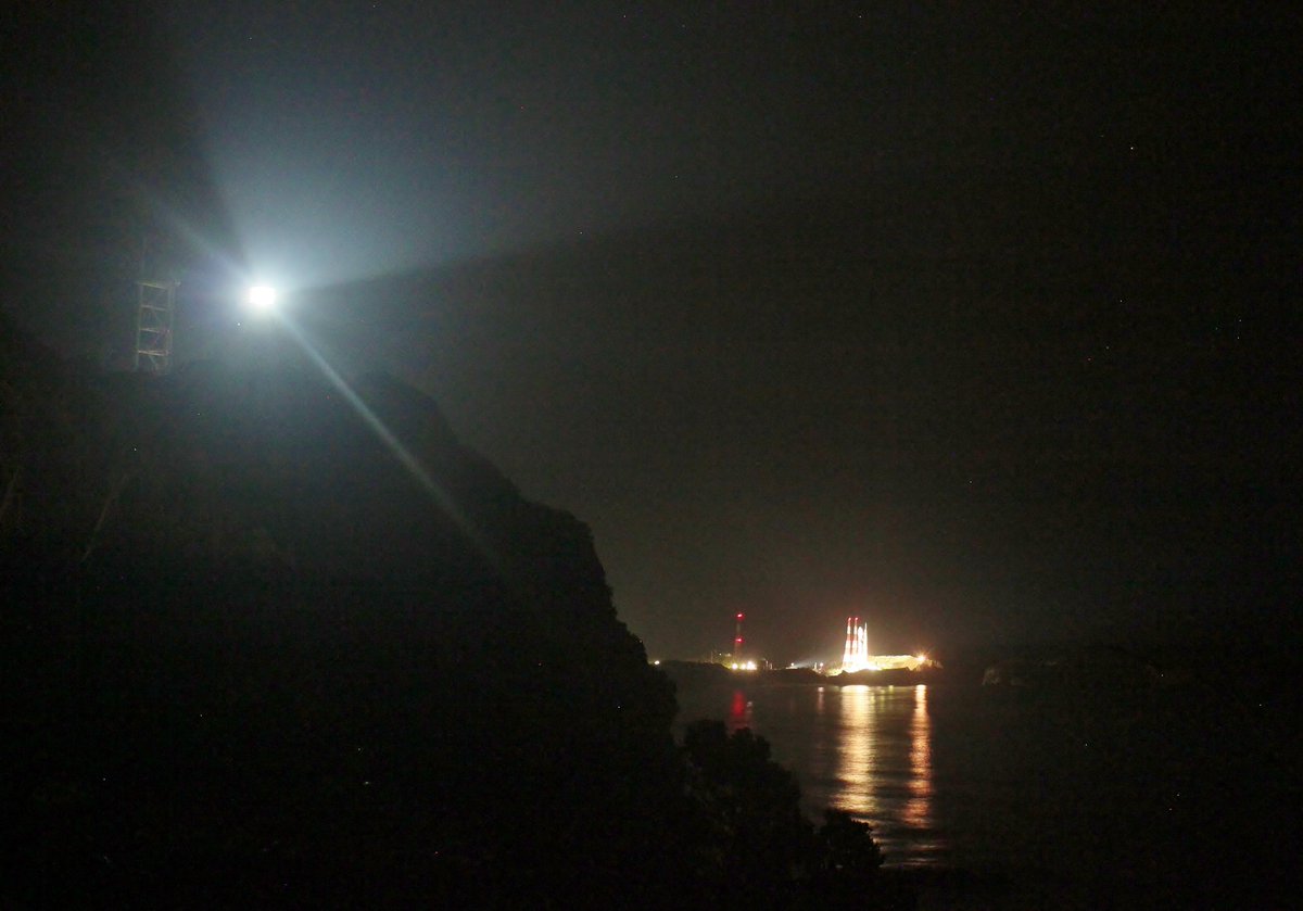 種子島灯台と闇に浮かびあがるH-ⅡA35号機。 #H2AF35 #QZS3