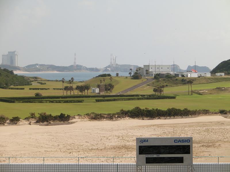 なお9時の段階でもう暑いです。熱中症対策は厳重に。また日焼け止め、紫外線対策も。エアコンのない車中にいるのも危険です。写真は竹崎の報道スタンドから射点方向。カウントダウンクロックもカバーが外されました。