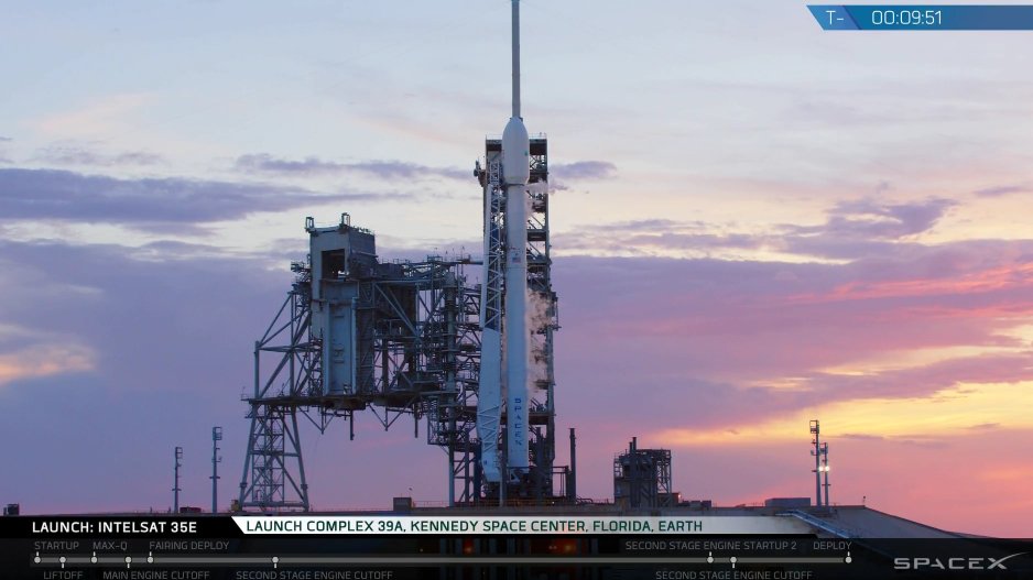 T-30 Minutes: Intelsat 35e is on battery power & in launch configuration. Not aware of any technical issues, weather is shaping up. #Falcon9