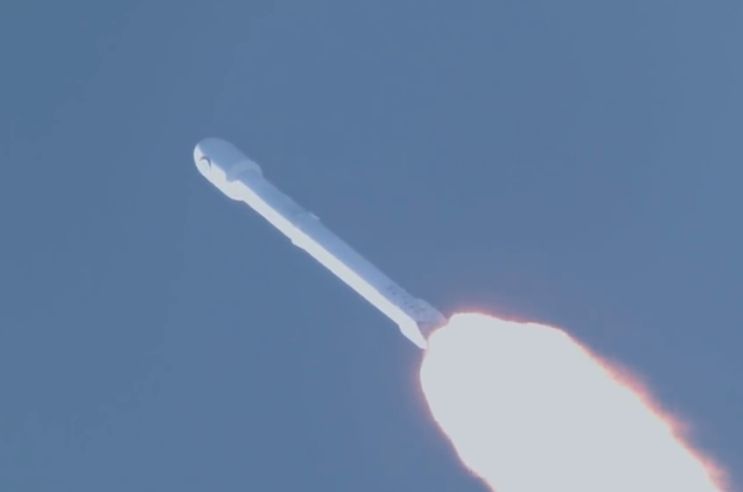 The Falcon 9's second stage Merlin engine restarts to propel the Intelsat 35e communications satellite into a geostationary transfer orbit.