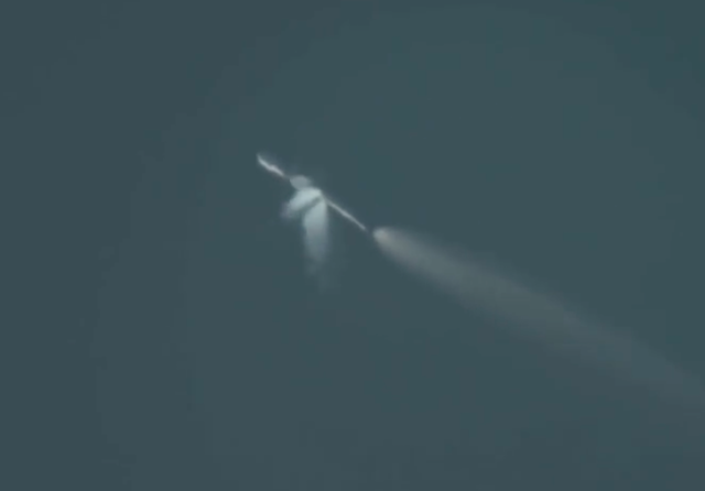 The Falcon 9 rocket reaches Max Q, the point of maximum aerodynamic pressure.