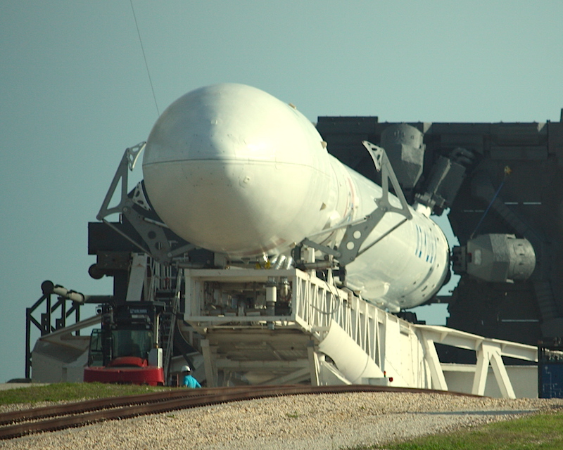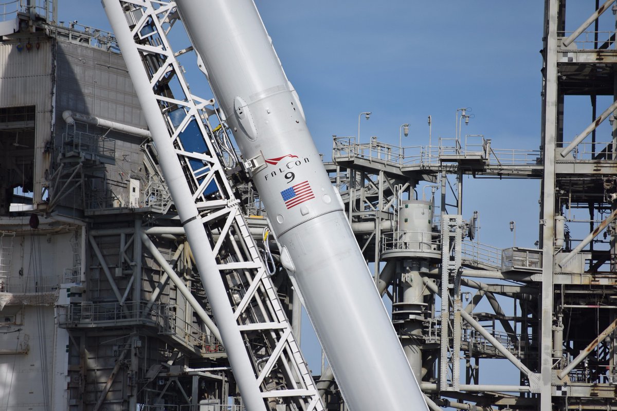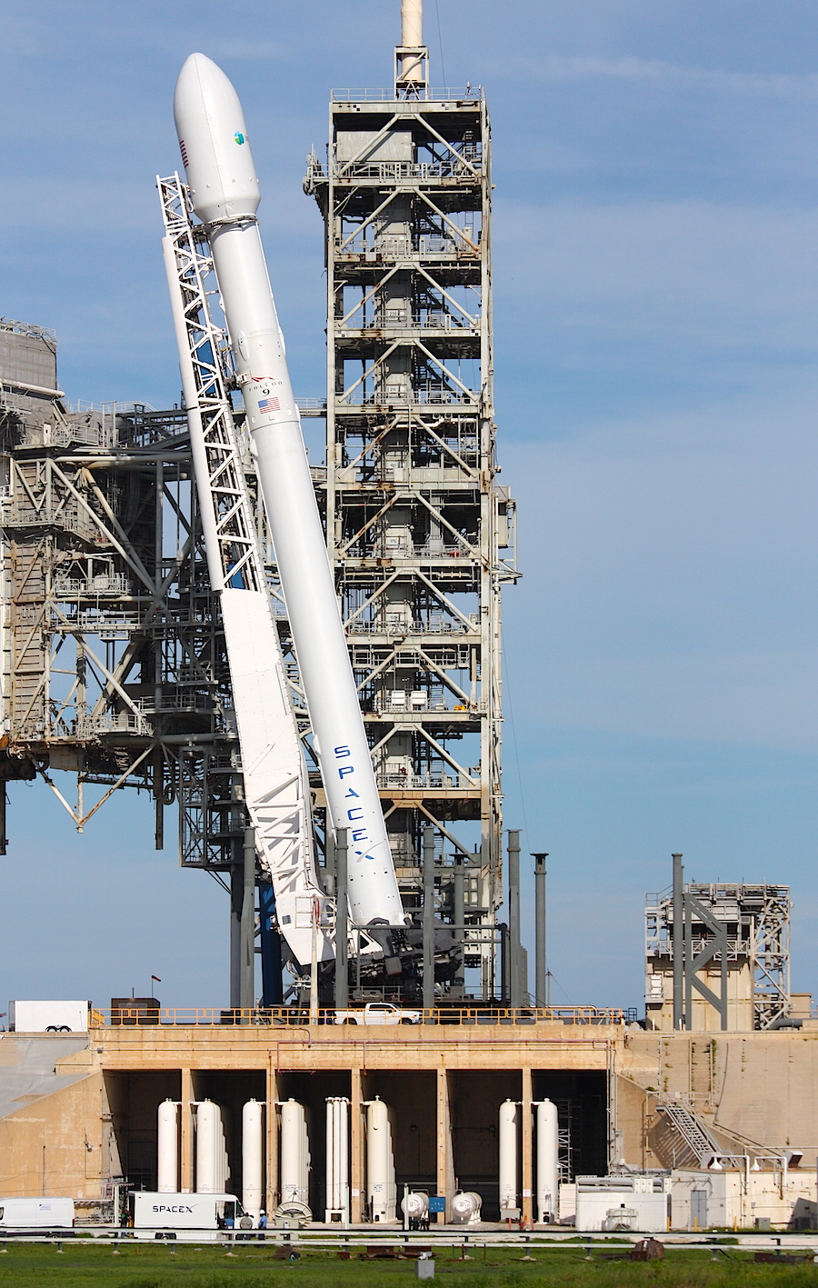 SpaceX's Falcon 9 rocket is currently being lifted vertical at pad 39A for liftoff tonight.