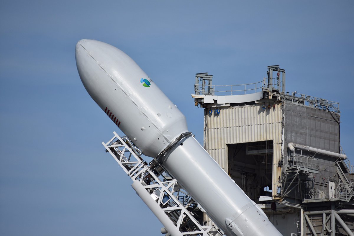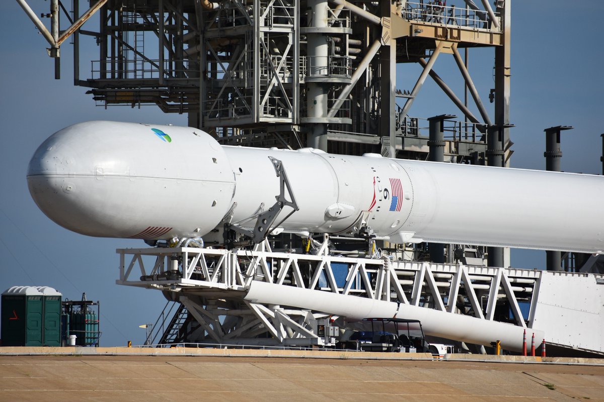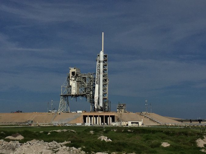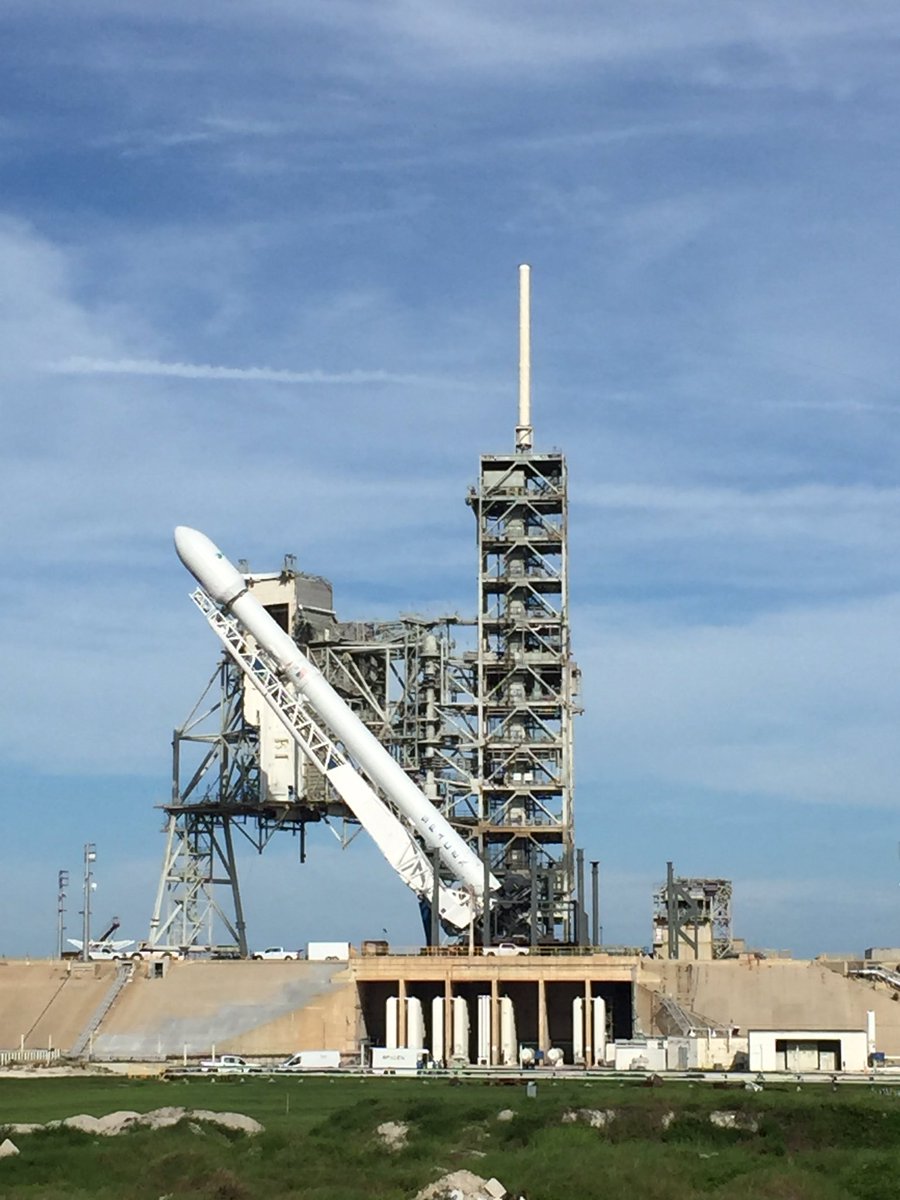 Good morning from #SpaceX Pad 39A! The expendable (bummer) Falcon 9 rocket is going vertical for today's 7:36 PM ET Intelsat-35e launch