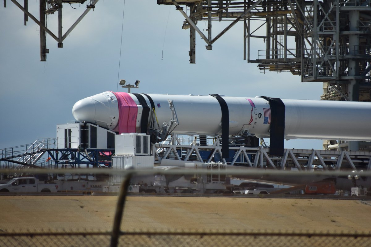 Here's a sneak peek of the #SpaceX Falcon 9 and Dragon at Pad 39A. Liftoff of CRS-12 to ISS is slated for 12:31PM ET tomorrow. LZ-1 landing!