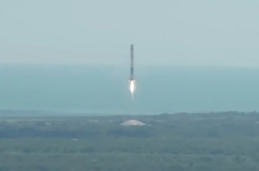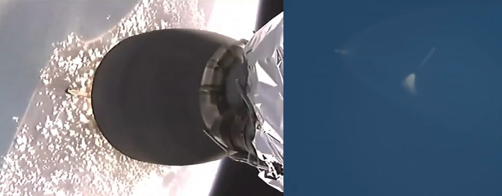 Live views from the core stage clearly showed the vibration of the booster in the entry environment and the trans-sonic phase as the vehicle went through the sound barrier for the second time. The four actuated grid fins on the booster were in charge of keeping the vehicle stable & on-course for a 50-second unpowered descent through the atmosphere before the center engine lit up seven minutes and 15 seconds after launch for the final landing maneuver.