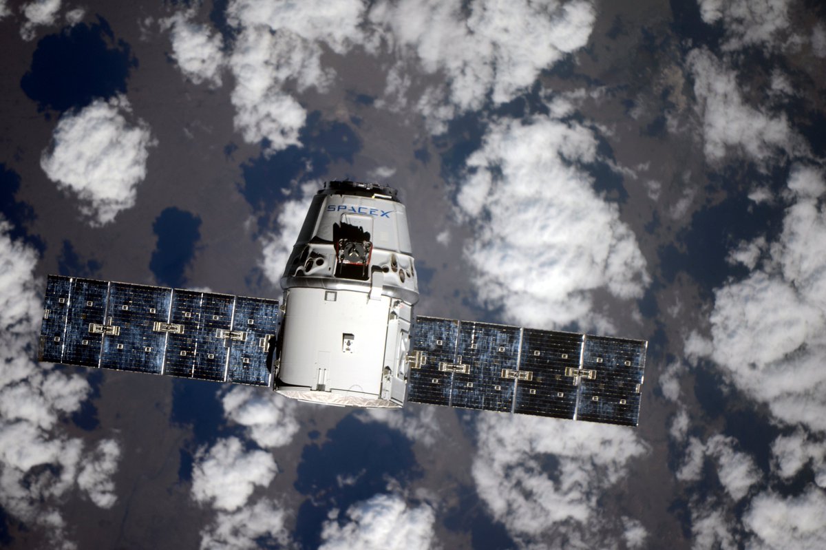 Корабль #Dragon перед стыковкой с Международной космической станцией.