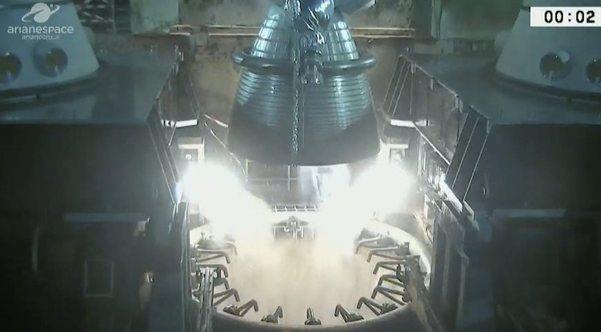 Ariane's Vulcain 2 Main Engine Fires before being Shut Down Unexpectedly – Photo: Arianespace Webcast