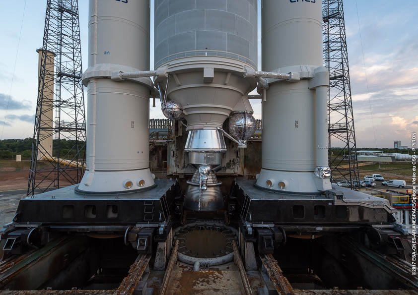Nice shot of both EAP's of #Ariane5 #VA239 while on the pad before the launch attempt, stack is planned to be moved back inside #BAF today.