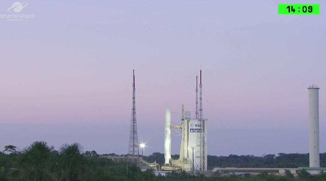 L-10 Minutes: Payload teams are now providing a final confirmation of satellite readiness & a final weather check is completed. #Ariane5