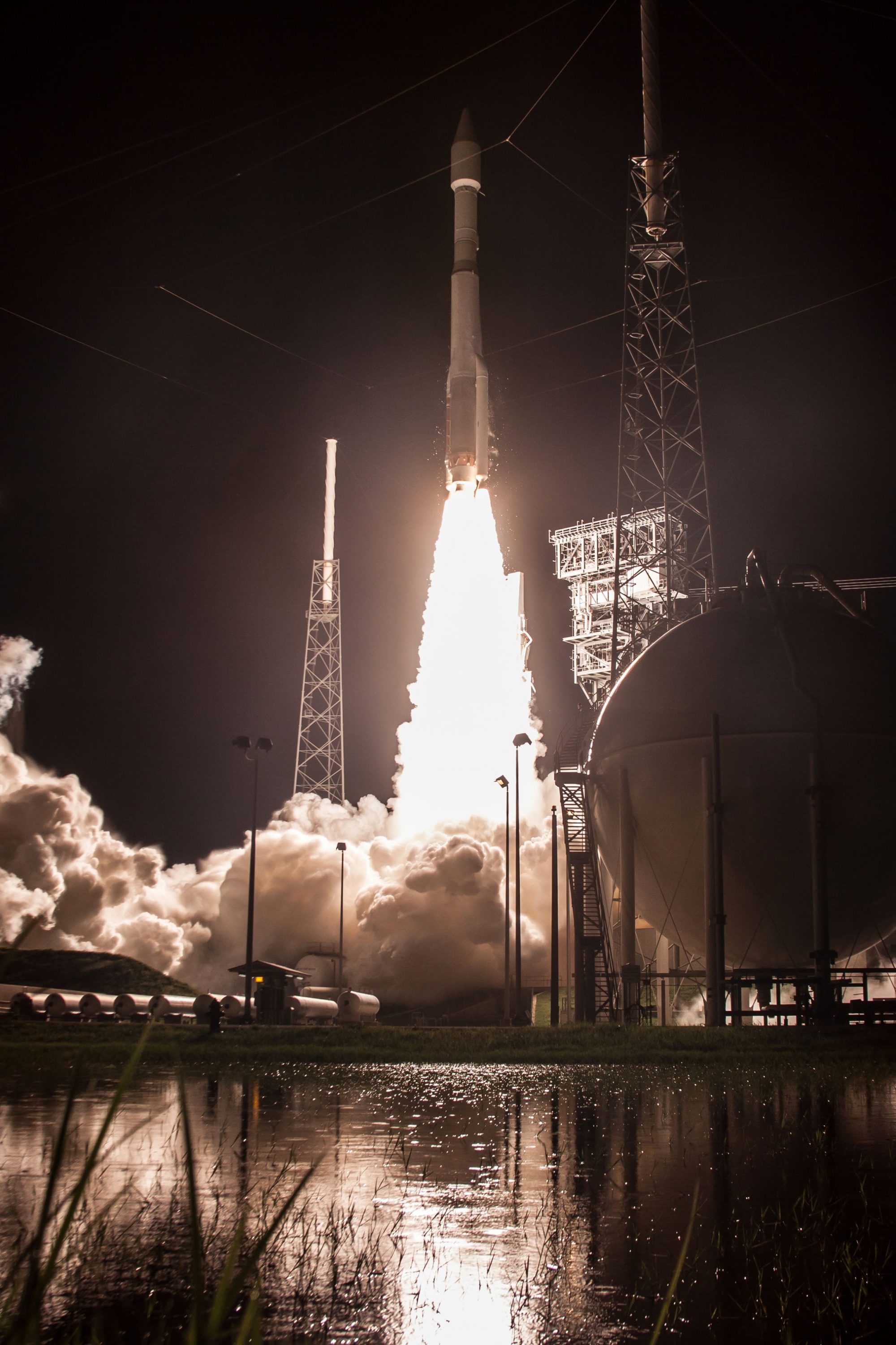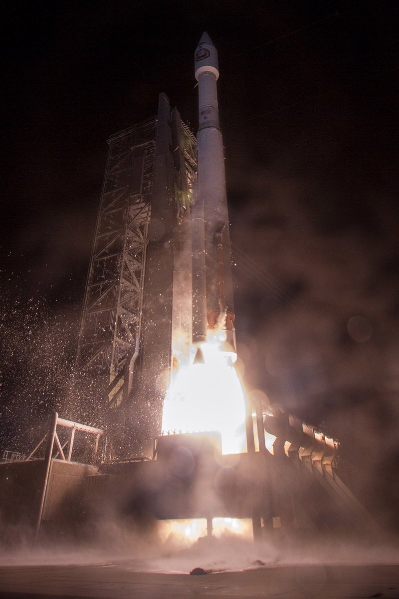 ЦитироватьAtlas 5 pierces the night to boost national security satellite into space