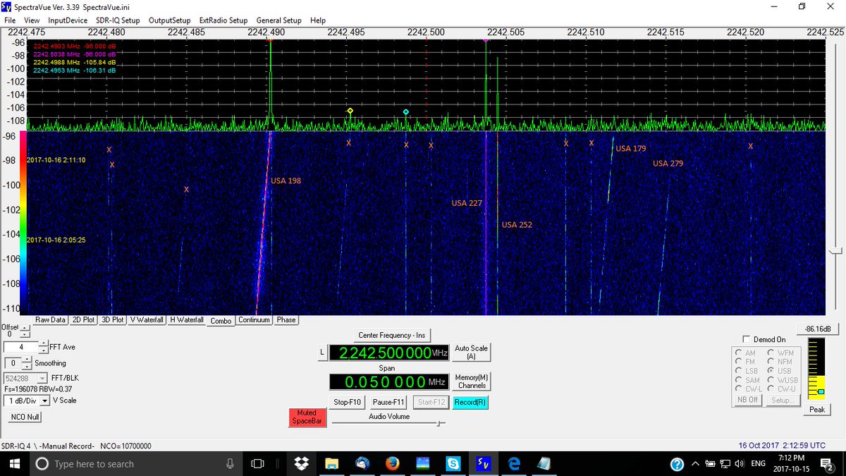 #NROL52 payload, presumably USA279, S-Band TT&C copied. S/C appears alive. SGLS 9 is a busy place! 'x' indicates spurious signal.