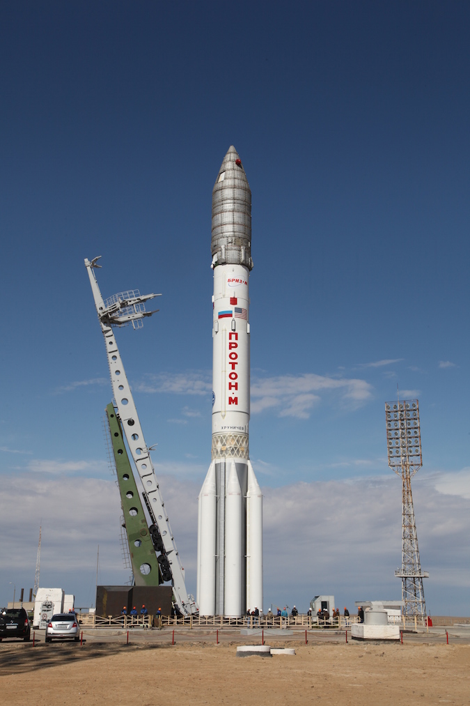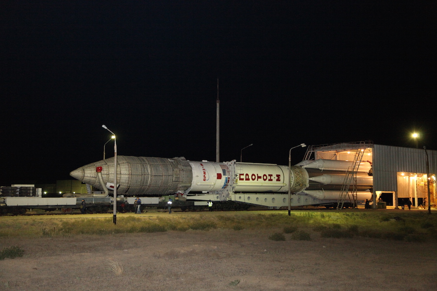 Photos of the Proton rocket's rollout to the launch pad Monday are posted below.