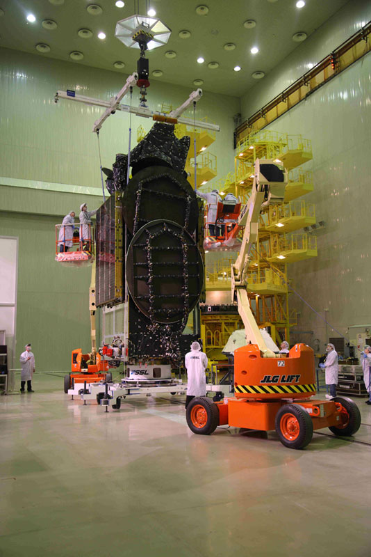 Фотогалерея  - сборка КОСМИЧЕСКОЙ ГОЛОВНОЙ ЧАСТИ РКН «ПРОТОН-М» В РАМКАХ ПУСКОВОЙ КАМПАНИИ «АЗИАСАТ-9»