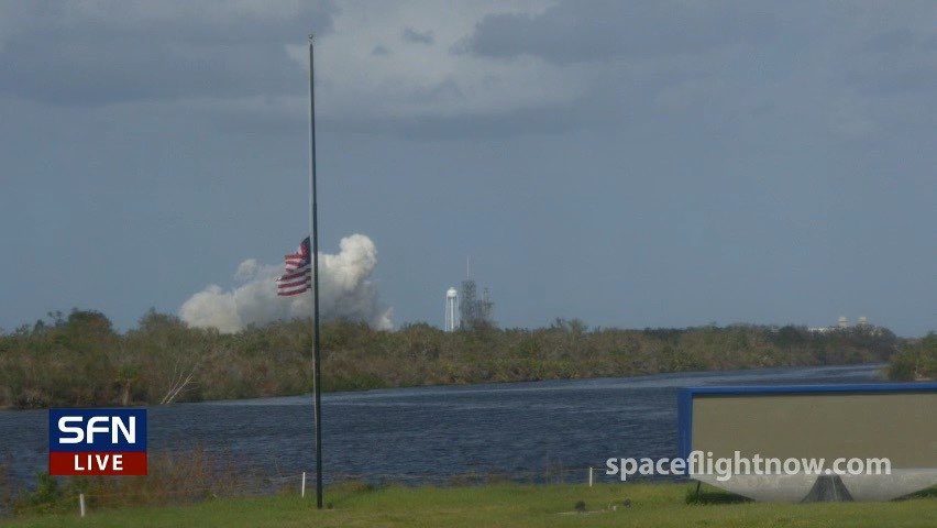 The Falcon 9 rocket's engines appeared to ignite at 4:30 p.m. EDT (2030 GMT) for SpaceX's customary pre-launch static fire test. We'll now await confirmation from SpaceX of a good test.