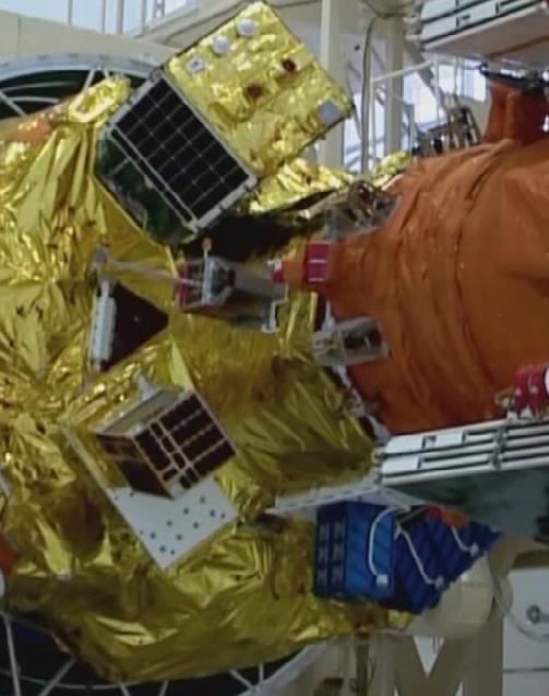 The main payload is a weather satellite, Meteor-2M No. 2-1. It is seen here attached to the final stage with some of the secondary payloads