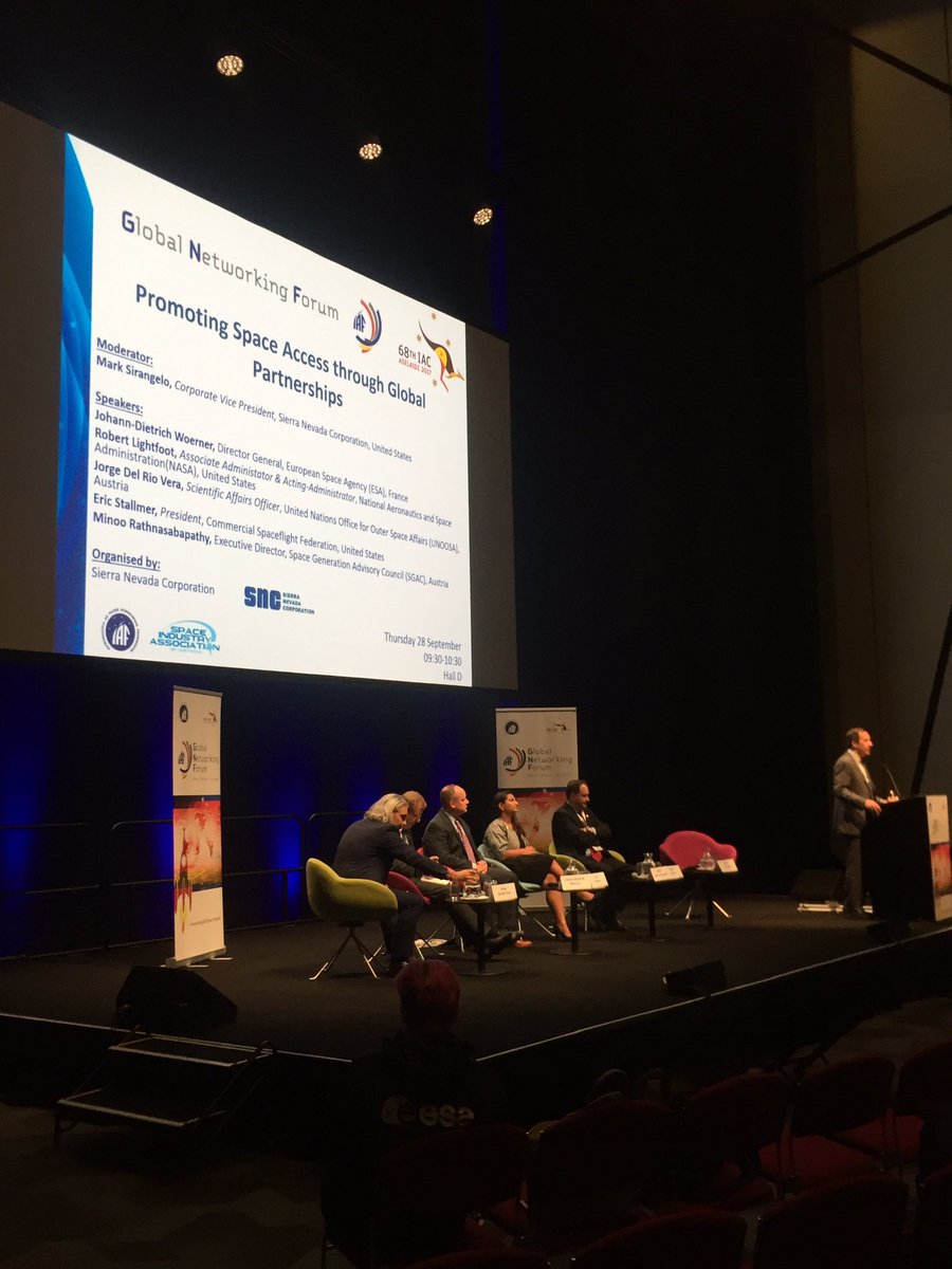 Global partnerships are essential for international cooperation&progress @SierraNevCorp @esa @janwoerner @SGAC @NASA @UNOOSA #GNF #IAC2017