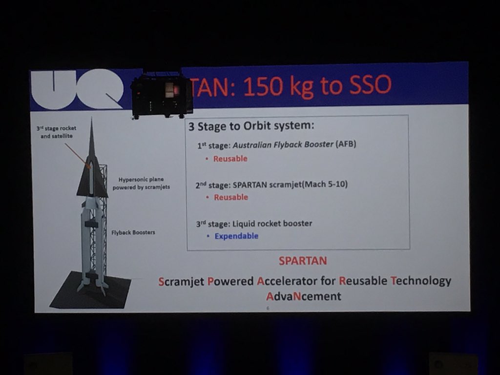 @UQ_News Taking off from Australian Spaceport in #FNQ - SPARTAN - 1st stg rocket - 2nd stg scramjet - 3rd stg rocket w/ small sat #IAC2017