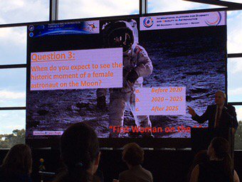 Could the first woman on the moon be as significant as the first man on the moon? asks Steve Durst to IAF IDEA Breakfast #IAC2017 Delegates