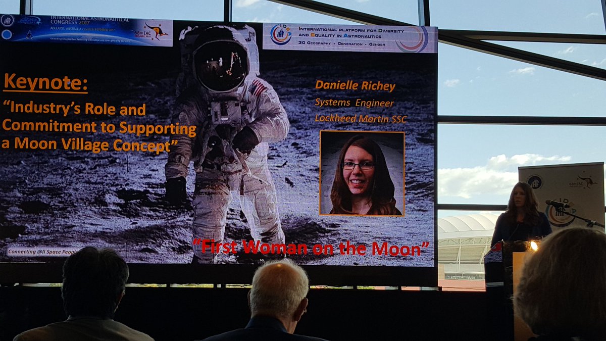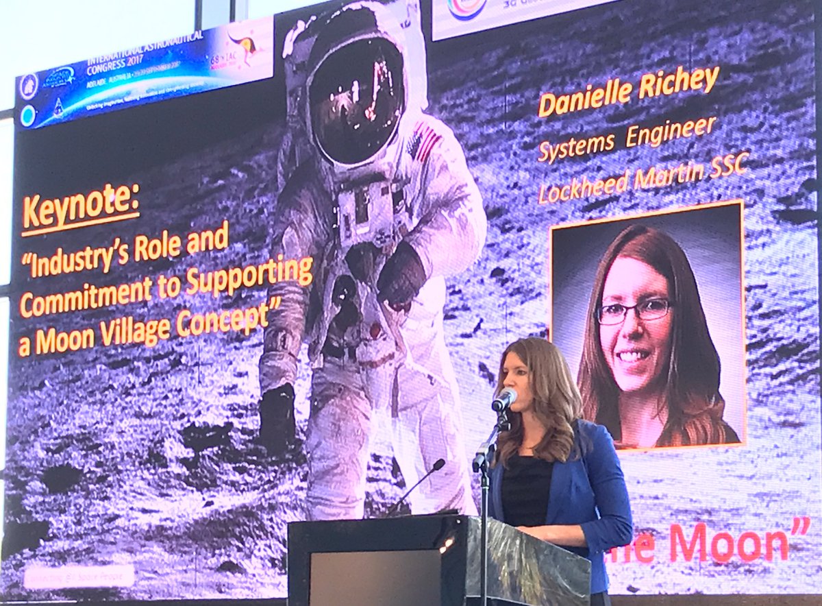 Keynote by @LockheedMartin engineer Danielle Richey, presenting the industry role in supporting the #Moonvillage concept. #IAC2017