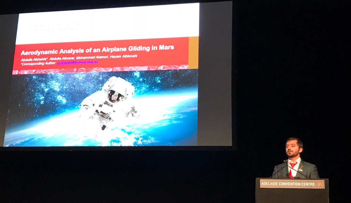 Eng Abdulla Al Shehhi presents his research on "Aerodynamic Analysis of an Airplane Gliding on Mars" during #IAC2017