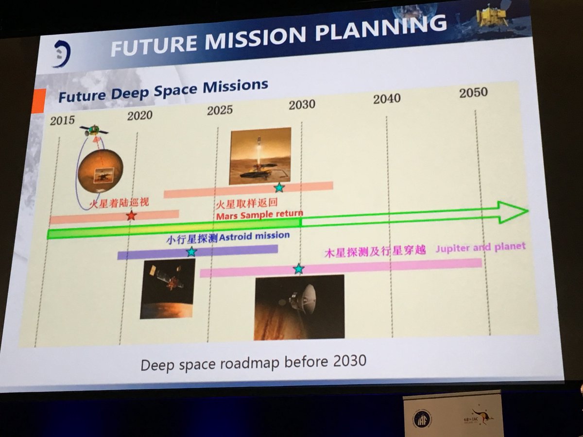 Chart shown by CNSA's Tian Yulong of future exploration missions includes Mars sample return in latter 2020s. #IAC2017