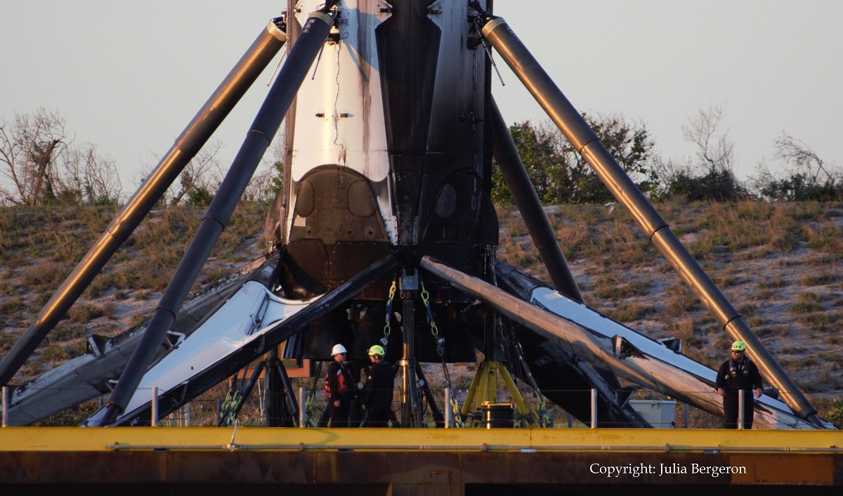 Прибытие F9 B1042.1 в Порт Канаверал (на Перископе) - https://www.pscp.tv/w/1PlJQQnLdoWJE (1:19:28 )