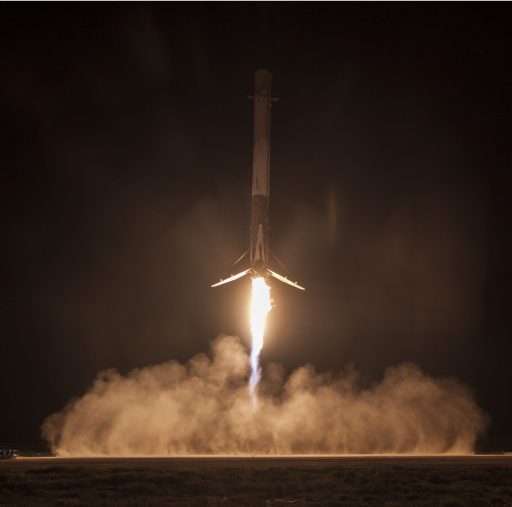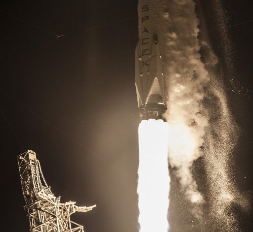 Thundering into the night under the power of its nine Merlin 1D engines, Falcon 9 will align itself with the desired launch azimuth to the North East similar to SpaceX's ISS launches as well as the NROL-76 mission of last year.