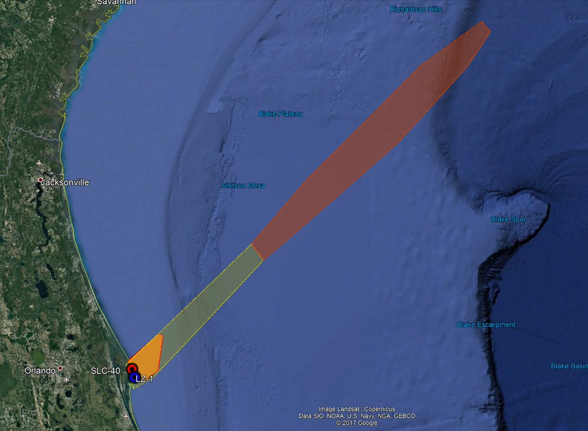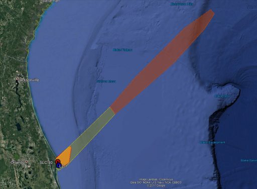 Zuma Launch Hazard Areas – Image: Spaceflight101/GoogleEarth