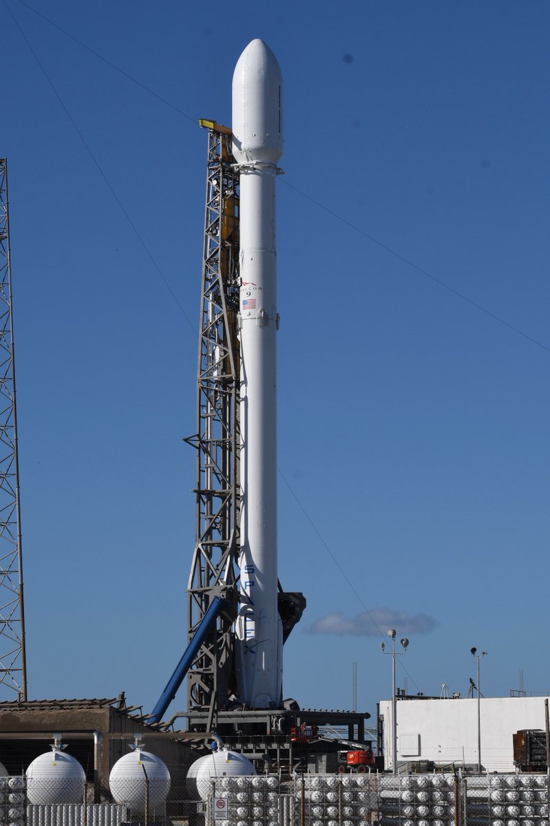 The 229-foot-tall (70-meter) Falcon 9 rocket is standing vertical atop pad 40 at Cape Canaveral ahead of tonight's launch scheduled for a two-hour window opening at 8 p.m. EST (0100 GMT).