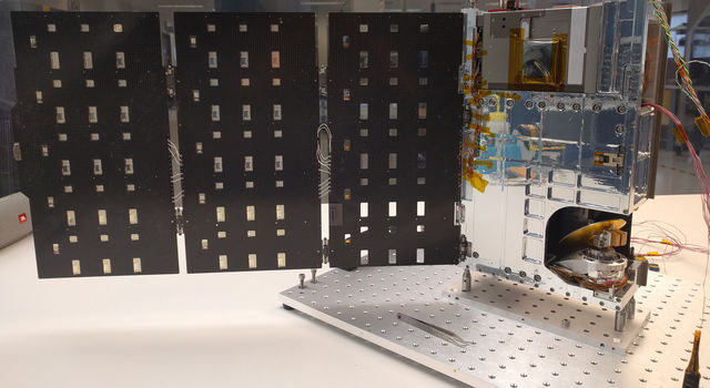 The complete TEMPEST-D spacecraft shown with the solar panels deployed. Credit: Blue Canyon Technologies