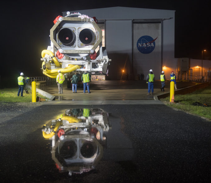 The Orbital ATK Cygnus cargo craft that will resupply the Expedition 55 crew on the International Space Station rolled out to its launch pad Thursday night. Cygnus is now targeted to blast off atop the Antares rocket Monday at 4:39 a.m. EDT from Wallops Flight Facility in Virginia. NASA TV will begin its live broadcast of the launch Monday at 4 a.m.