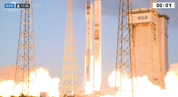 LIFTOFF !! #Vega flight #VV12 soars into the sky carrying #Aeolus on its flight to orbit — pioneering a new way to monitor wind from space