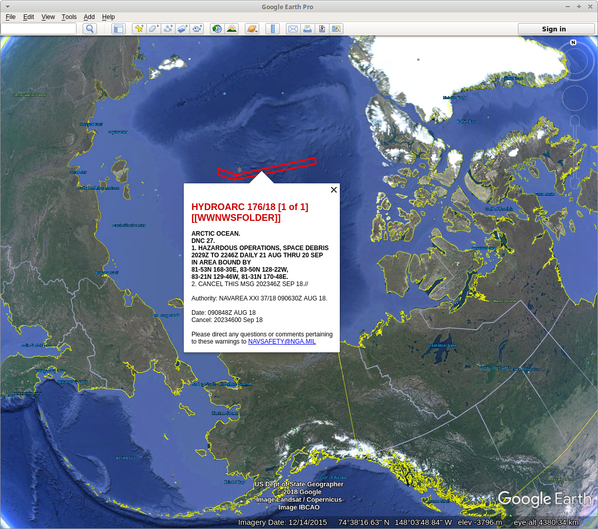 High over Canada, the #Vega AVUM has shut down on schedule after boosting #Aeolus on a path towards apogee. Flight #VV12 will now coast for ~30 minutes, over the Arctic and down towards Australia before igniting the upper stage for a 2nd time