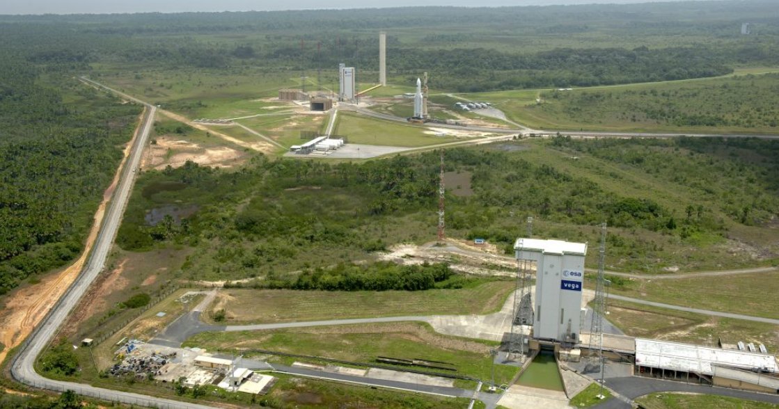 The 270-square-mile space center, run by the French space agency, CNES, and the European Space Agency, is located on the jungle coastline of French Guiana, situated on the northeast corner of South America.