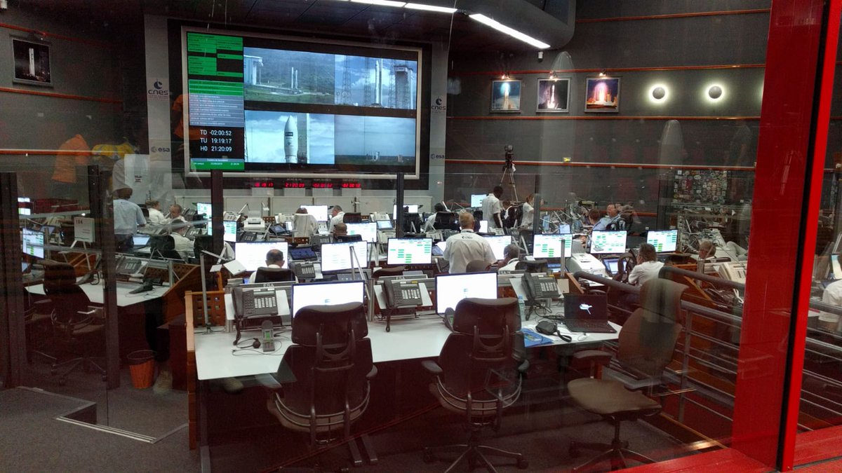 #Jupiter control room (#Vega launch control) in #Korou is also a hive of activity - voice comms have just been confirmed between #ESOC A-Team #FlightDirector P P Emanuelli and his counterpart in #Korou