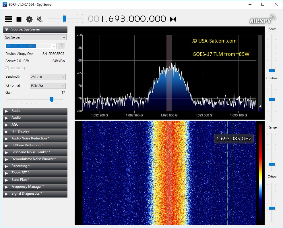 GOES-17 this evening around 89W with a good TLM signal on 1693 MHz.