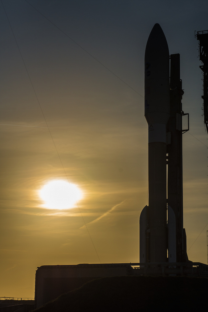 These photos show the Atlas 5's journey to the pad, along with shots captured Wednesday evening showing the Atlas 5 at dusk.