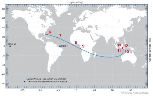 The long coast phase will see the stack fly over South-Central Africa, heading out over Madagascar for a lengthy pass over the Indian Ocean ahead of the critical re-start of the Java Sea.