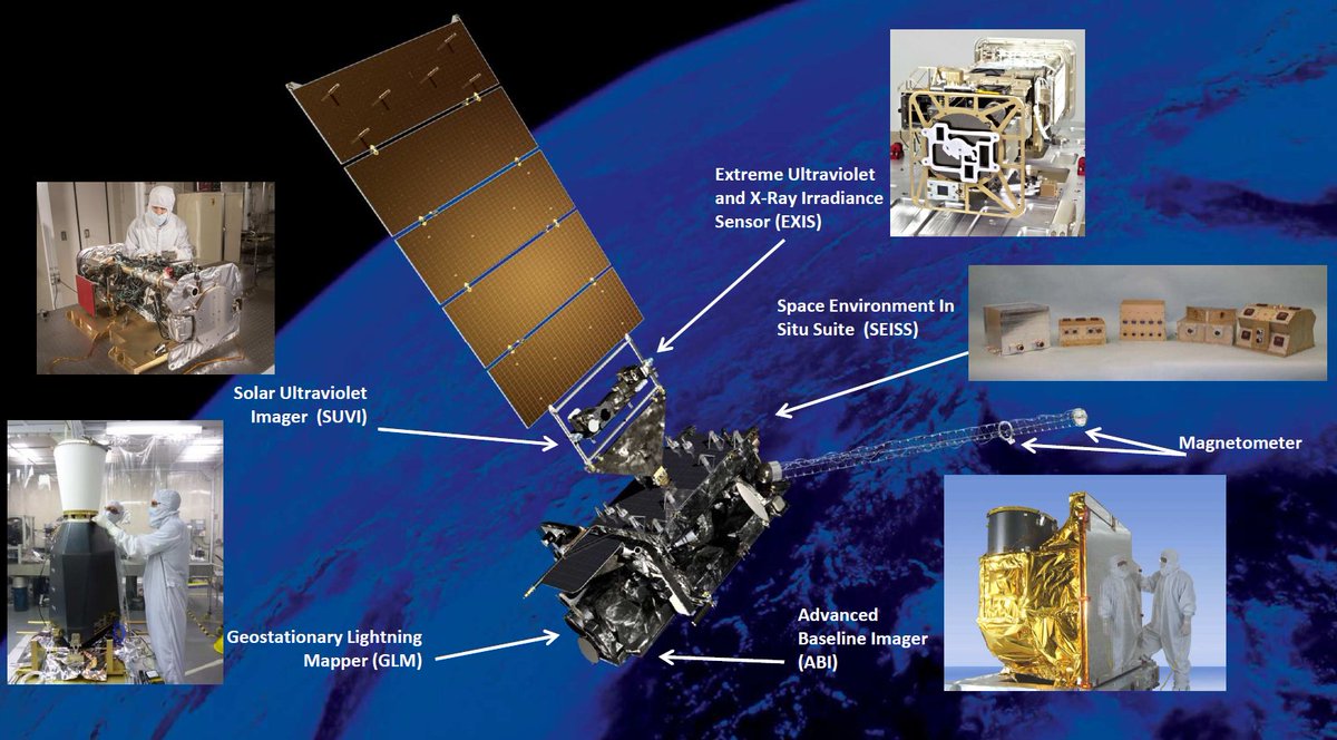 #GOESS hosts 6 instruments - ABI doubles as an imaging and sounding payload collecting global data every 5 minutes, GLM tracks lightning with unprecedented accuracy, SUVI/EXIS monitor solar activity, SEISS/MAG track local space weather parameters. Details: http://bit.ly/2frG4Tl