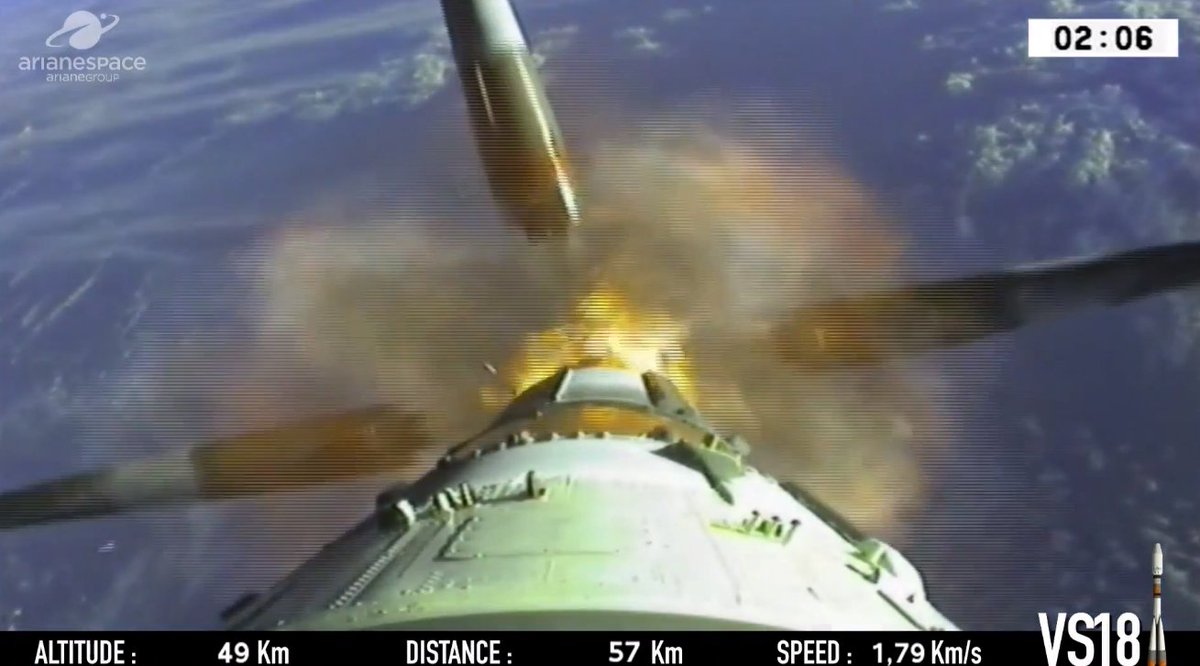 Через 9 минут 23 секунды после старта головной блок в составе разгонного блока (РБ) «Фрегат-МТ» и четырех космических аппаратов O3b успешно отделился от третьей ступени РН «Союз-СТ-Б». Разгонный блок «Фрегат-МТ» приступил к выполнению полетного задания по выводу на целевую орбиту космических аппаратов.