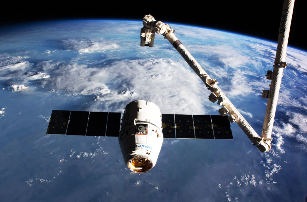 SpaceX's Dragon cargo craft is seen during final approach to the International Space Station on Feb. 23, 2017. The commercial spacecraft carried about 5,500 pounds of experiments and supplies to the orbiting laboratory. Space station crew members used the station's robotic arm, Canadarm2, to capture Dragon.