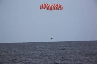 The SpaceX Dragon splashes down in the Pacific Ocean in May of 2016 after resupplying the Expedition 47 mission.