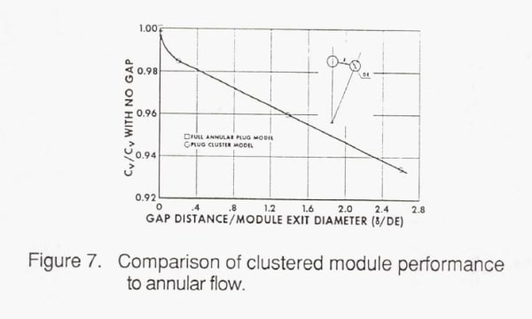 Насколько падает эффективность обрезанного сопла от максимальной (для холодного прожига), т.е. передача импульса реактивной струи на кончик аэроспайка совершенно незначительная из-за малой площади этого участка.