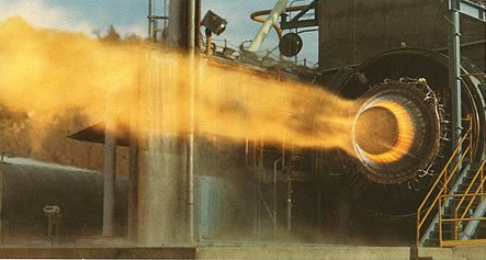 Это J-2Т?  На водороде? А пламя желтое - что весьма не характерно для водородного двигателя.  Обычно желтым светится не сгоревший углерод!