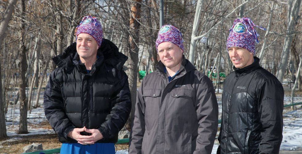 Экипаж МКС-55/56 (слева направо): Эндрю Фойстел, Олег Артемьев и Ричард Арнольд